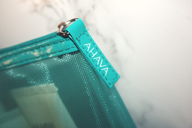 ❤ Ahava was voor mij een nog onbekend merk, maar ik kreeg deze vier travel-size producten in de I ❤ Myself to Hydrate box. Ze kwamen in dit leuke, turquoise tasje, waar je de producten makkelijk door kan zien. Erg handig om bijvoorbeeld mee op reis te nemen, of om een paar Essentials in je handtas bij te houden.