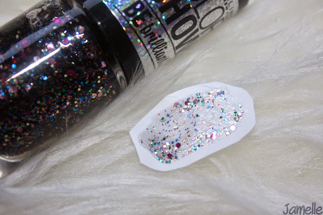 419 Spark The Night - Deze heeft een grijzige, doorzichtige kleur en ook deze heeft glitters in verschillende kleuren en groottes.